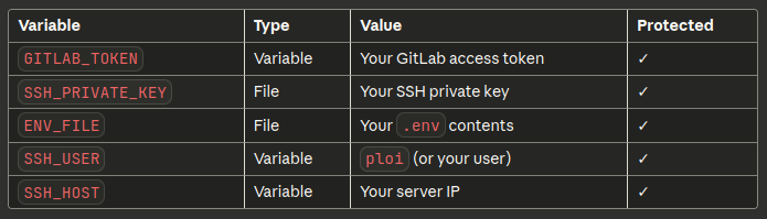 Go to Settings → CI/CD → Variables and add:
